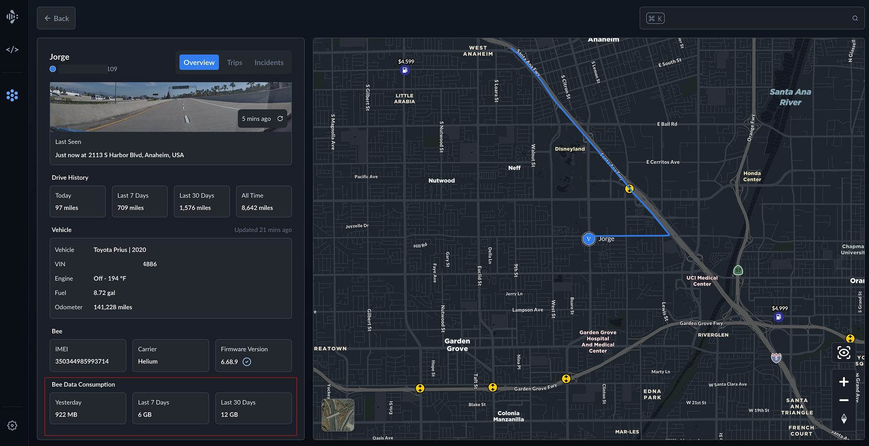 If you're running a fleet, you can monitor exactly how much data each device is consuming on the driver profile in your Bee fleet dashboard — broken down by yesterday, last 7 days, and last 30 days. No guessing, no surprises on your carrier bill.