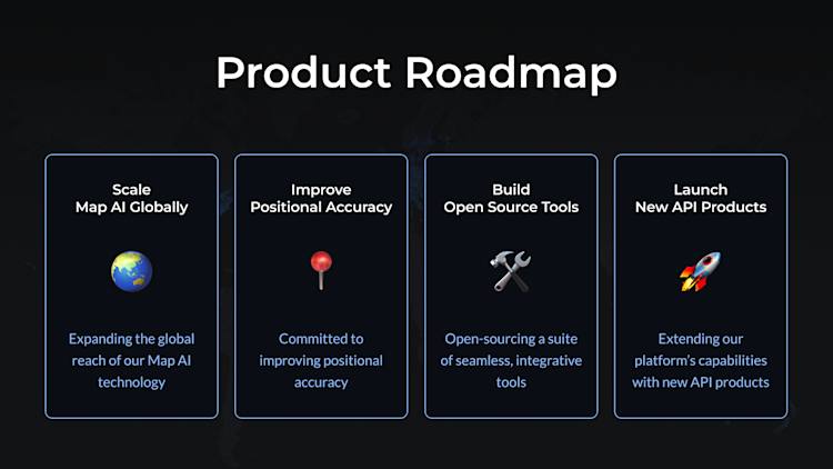 These elements all support Hivemapper’s focus on building map data products that customers want to use. Our Map Image API and Map Features API are currently available, with more map data products coming soon. Together, we’re transforming the way we build and update maps.