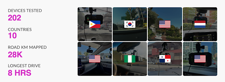 We’ve tested over 200 Hivemapper Dashcams across ten countries, including hot places like Las Vegas, NV. These dashcams have mapped 28,000 km so far with the longest drive at eight hours.