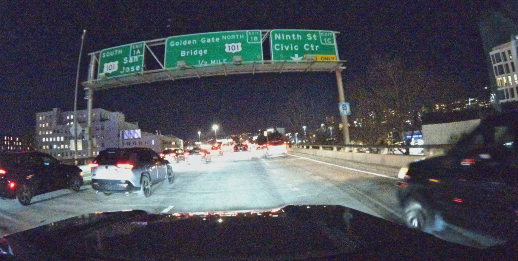 A highway sign near the SoMa on-ramp. Independently detected 154 times. The most-confirmed map feature in the entire dataset.