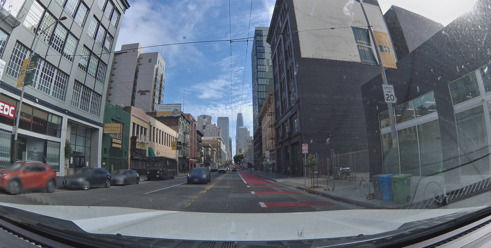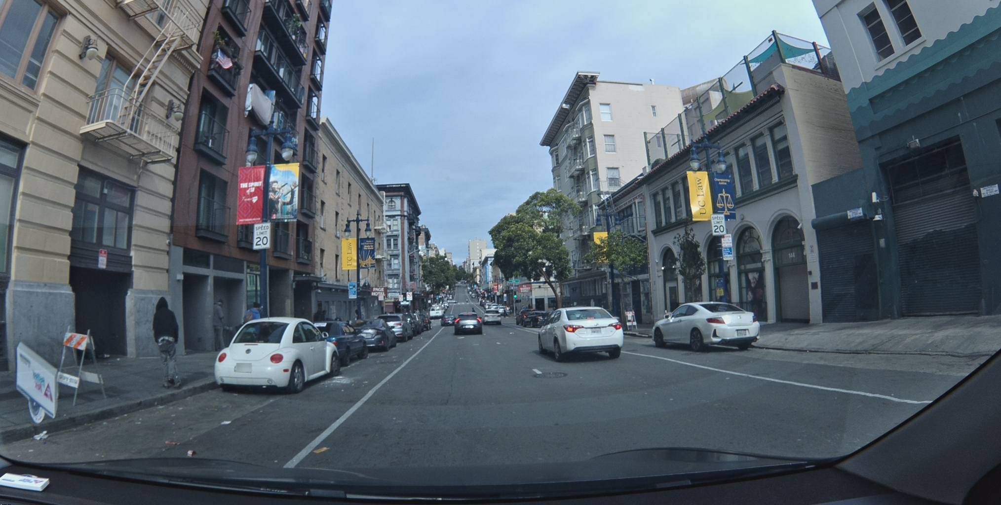 }'This frame near UC Hastings College of the Law. Two 20 mph signs — one on each side of the street. You might register them peripherally. The Bee reads both. Records both. Adds them to a growing database of confirmed speed limits for this corridor.