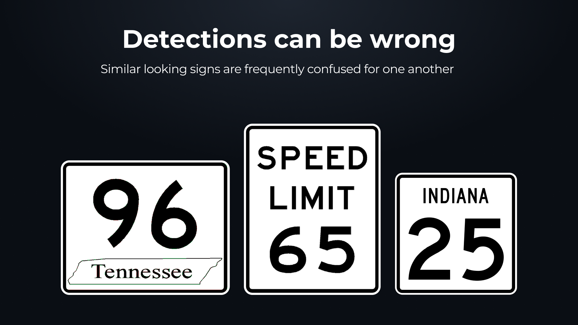 Detections can be incomplete. For example, detecting a speed limit sign that applies to a school zone isn’t very useful, if it only applies during specific hours written in small font and you can’t read them.