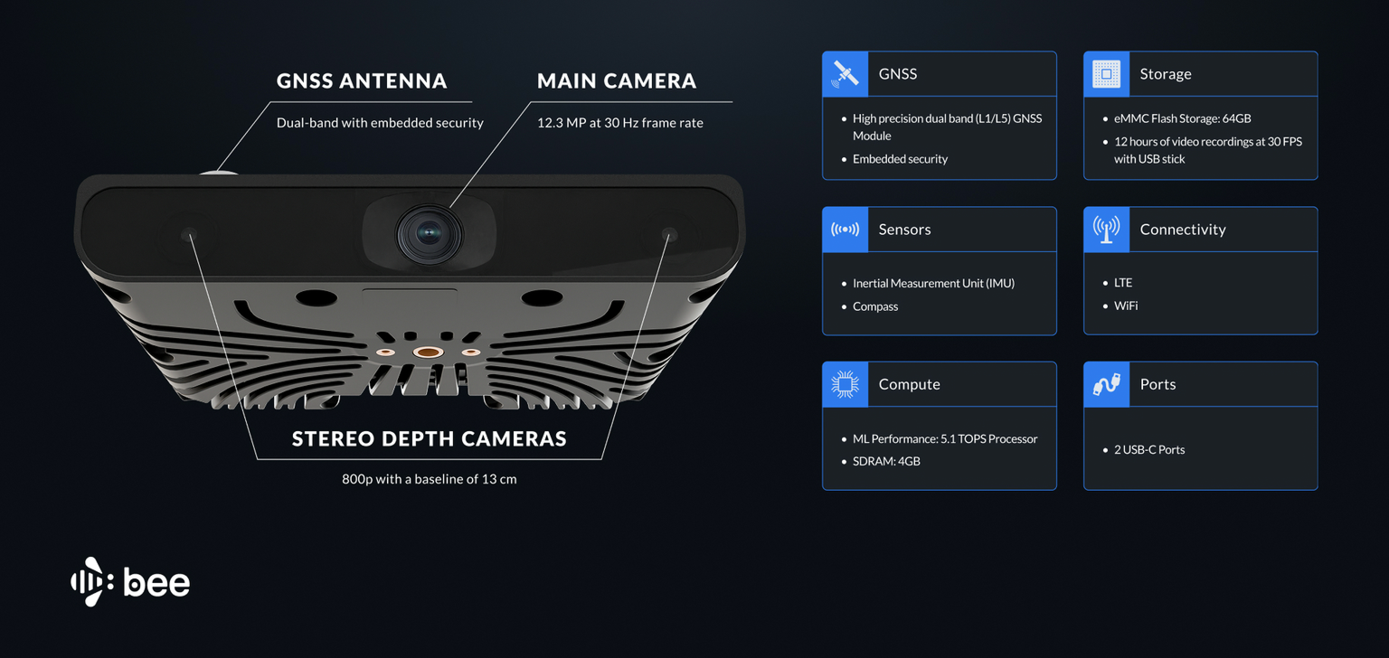 The Bee is an intelligent camera device that is mounted in vehicles. It looks like a dashcam, but inside it is far more than a dashcam.