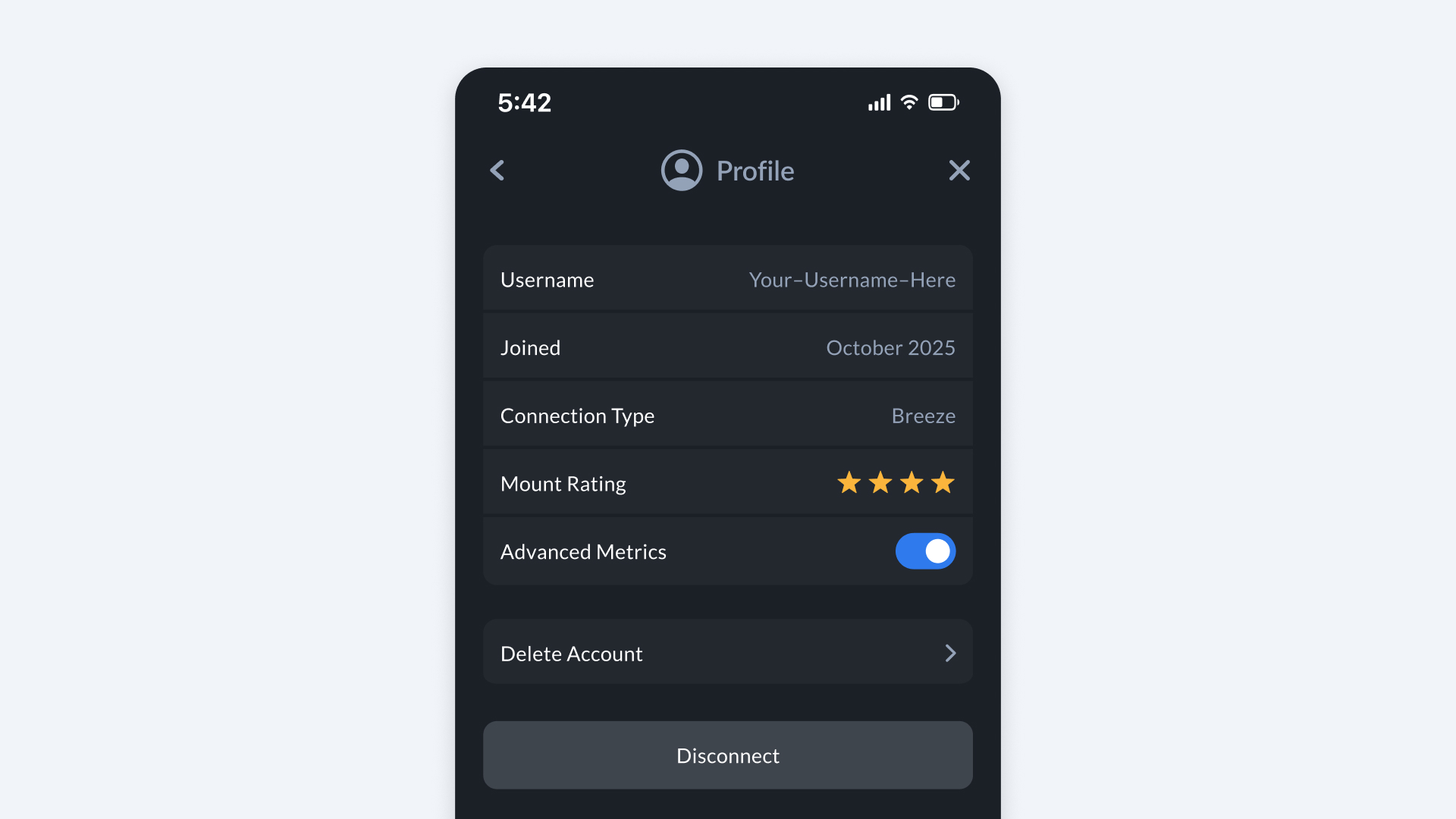 - Delete Account -- Permanently remove your account.