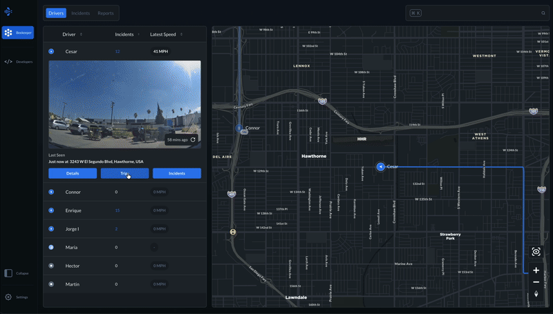 Trip History provides a comprehensive record of all vehicle journeys, including: